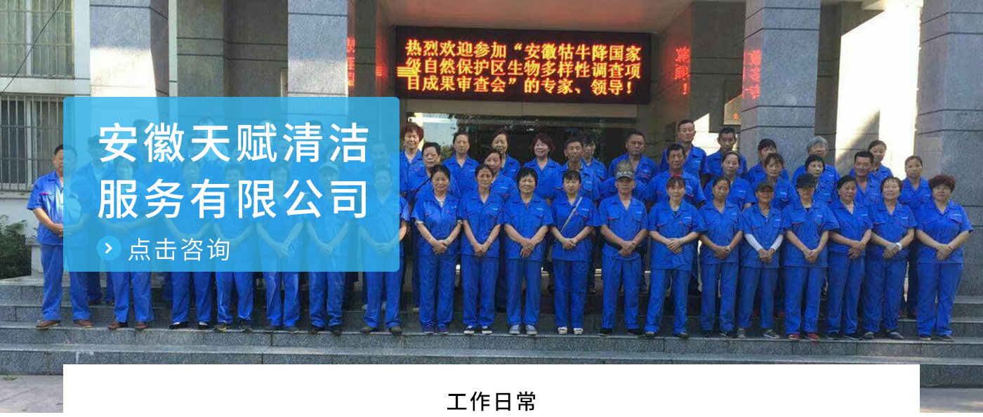 安徽天賦清潔服務(wù)有限公司是的服務(wù)型企業(yè),主要從事道路清潔、物業(yè)托管保潔、工程開荒、高空作業(yè)、地毯清洗、石材翻新等多項服務(wù)為一體的環(huán)保型清潔公司。公司管理機制完善,清潔作業(yè)經(jīng)驗豐富,擁有技術(shù)力量,嚴格實行崗前培訓—崗中督查—上崗在培訓的員工管理措施,憑著優(yōu)良的清潔質(zhì)量和嚴格的督查管理,為眾多企事業(yè)單位、醫(yī)院、酒店、廠區(qū)商場、物業(yè)、道路、學校、公園等提供后勤清潔服務(wù)。在業(yè)內(nèi)擁有良好的口碑。工作人員,服務(wù)態(tài)度優(yōu),竭力為客戶提供好的保潔服務(wù)。安徽天賦清潔服務(wù)有限公司:致力于長期合作關(guān)系,提高服務(wù)質(zhì)量,提供高標準的清潔服務(wù)。公司的經(jīng)營理念:為營造一個更清潔、亮麗的生活和工作環(huán)境而努力!“誠信”是公司成功保證。“客戶至上,信譽為首”是公司宗旨。高標準提供服務(wù),維護客戶利益、形象,是我始終不渝的目標。